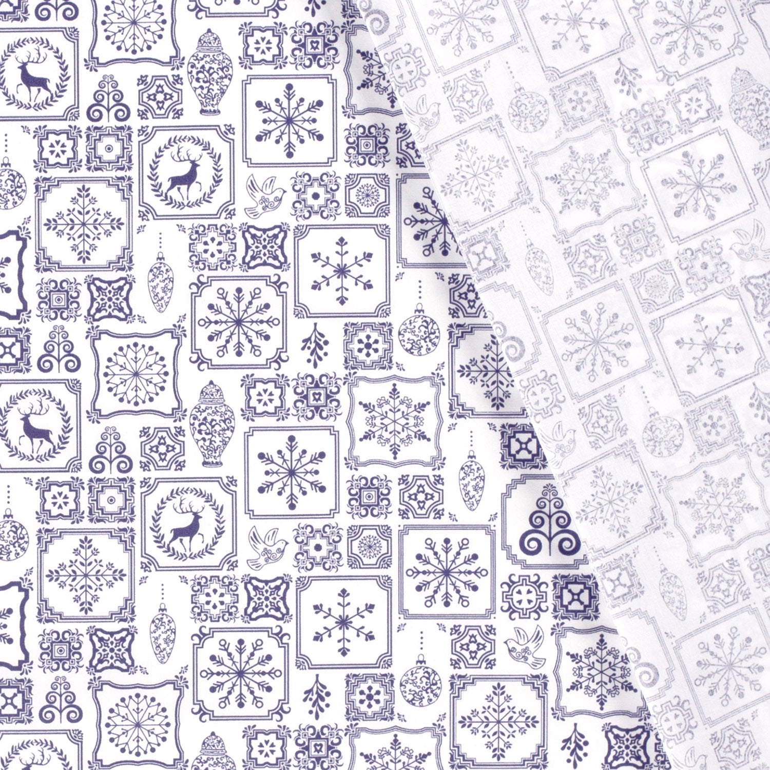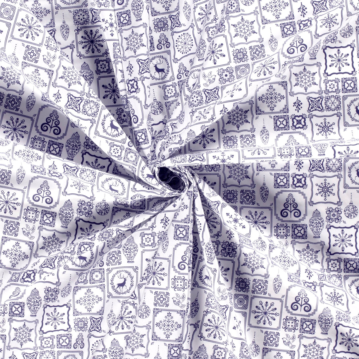 Katoen Poplin stof bedrukt Kerstornamenten Wit